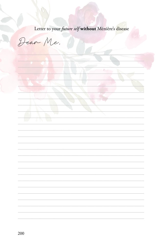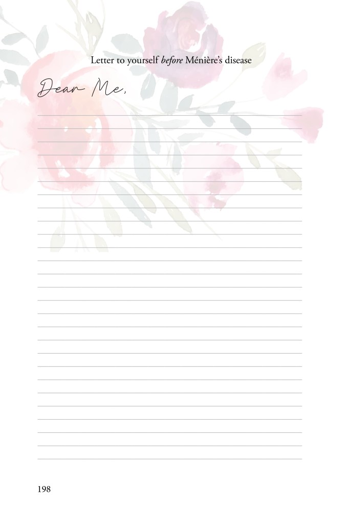 Here’s a peek at inside the book. Ménière’s Woman. Honoring you. xx